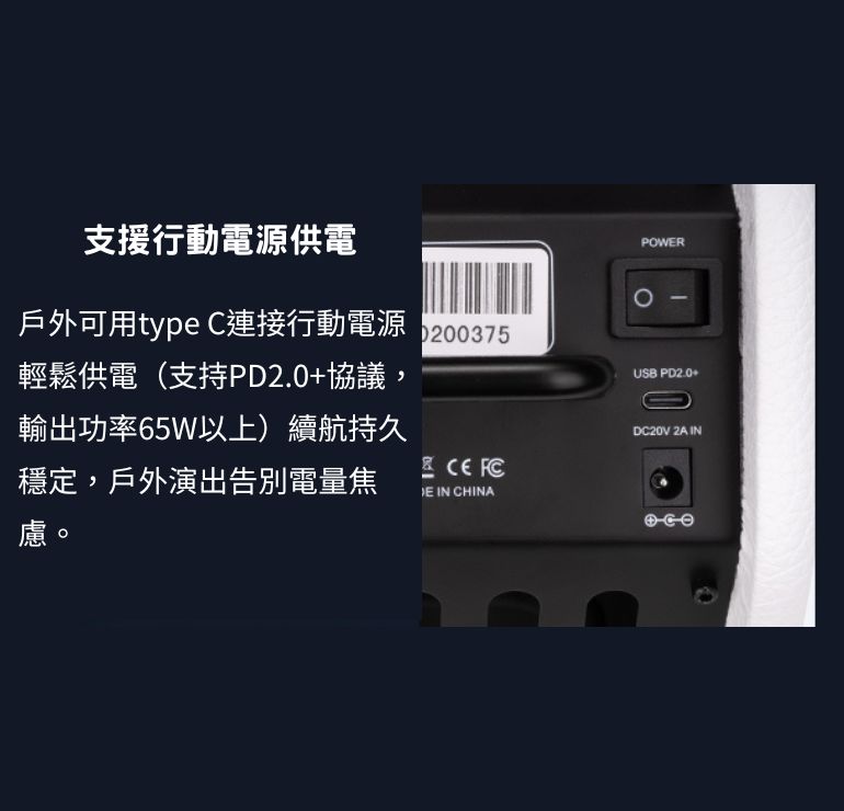 供電方式:外接變壓器或type C(65w或更高)